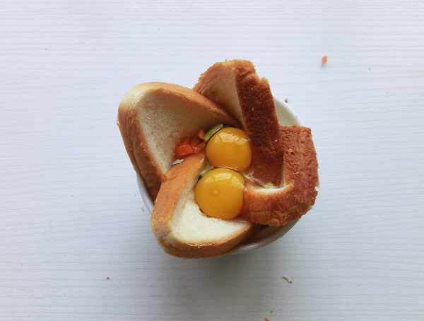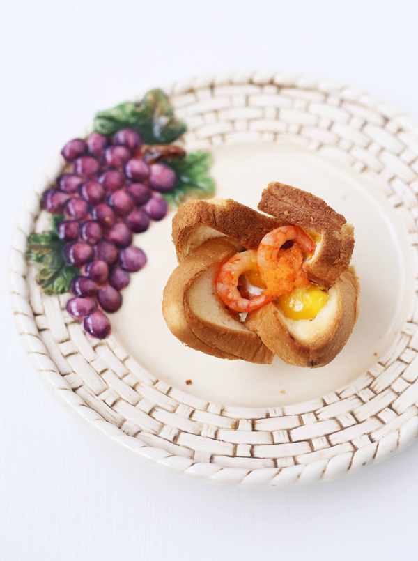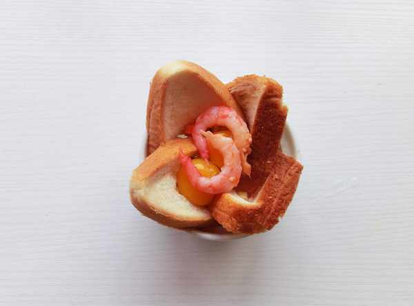 食材:吐司片2片,黃瓜20克,胡蘿卜20克,北極蝦4個,馬蘇裡拉芝士碎20克,鵪鶉蛋4個。