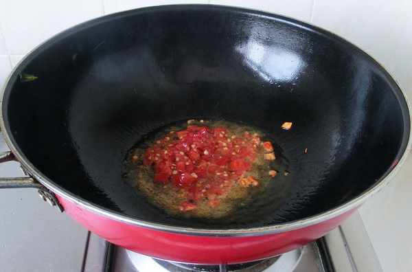 2.鍋中放油,燒熱,爆香蒜末和剁椒。