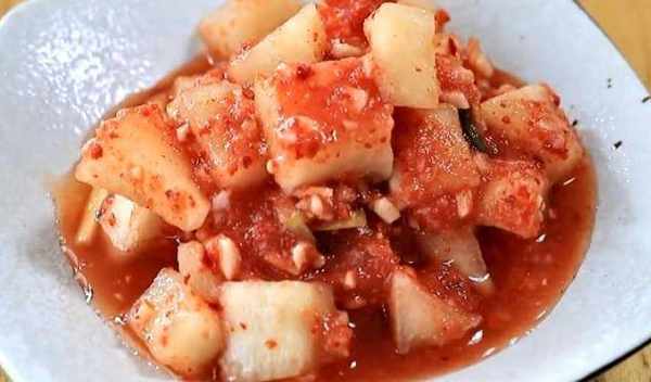 3:把西紅柿汁倒在一個大盆中,加上辣椒粉、食鹽、蒜末、蔥段、白糖攪拌均勻,再把蘿卜塊放進去攪拌均勻,放在冰箱裡冷藏3天即可,放在冰箱的時候,要記得每天都取出來攪拌一下,把裡面的空氣都攪拌出來,這樣可以使蘿卜更加清脆爽口。