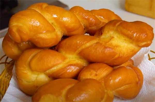 8.看看這個大麻花剛炸好,表皮很脆,但是裡面特別暄軟,我平時吃慣瞭那個咸酥小麻花,偶爾吃一次咱們這個松軟大麻花,覺得還挺好吃的,這個味道有點甜甜的,牛奶的味道特別足,喜歡的朋友趕緊在傢試試。
