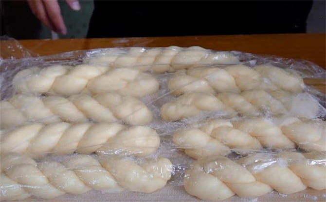 6.麻花都弄好之後蓋上保鮮膜,松弛20分鐘,這一步不可忽略。