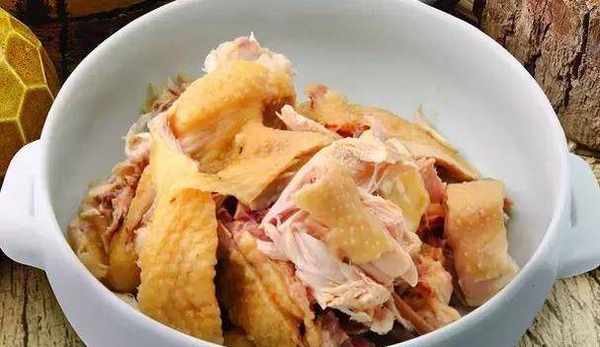 6. 把醃制好的雞放進鋪好薑片,蔥和雞油的電飯鍋,同時把醃制的調料也一起倒進去,在雞身上淋一勺色拉油,按下煮飯鍵,等到電飯鍋跳起,過十分鐘開鍋,取出雞,撕,吃的時候可以配上喜歡的蘸料,薑末,蒜末,薑汁,幾滴生抽,一點點糖和多多的麻油拌在雞上。