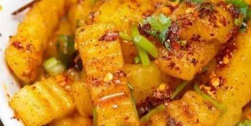 食材:土豆, 蔥 ,香菜, 蒜泥 ,辣椒油 ,鹽, 醋生抽 ,辣椒粉, 孜然粉, 五香粉 ,花椒粉