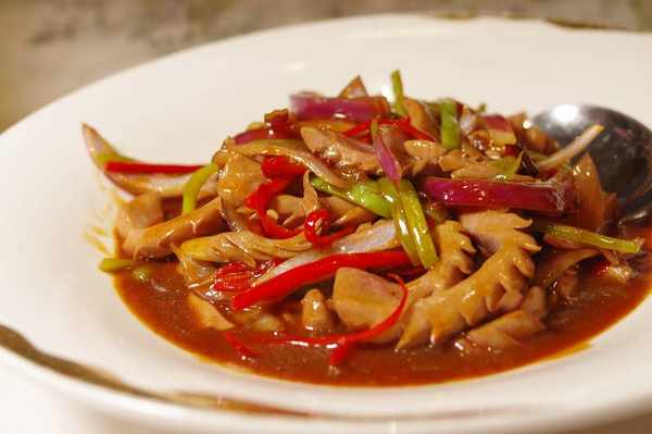樟樹港辣椒炒五花肉,辣椒才是重點,質脆無渣鮮辣適度,愛吃辣的人會很喜歡。 其中的海參主要作用應該是提升檔次,托舉賣價。