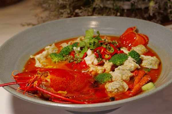 水煮波龍+雲吞。波龍體型大但肉質粗,相比之下,雲吞更美味。