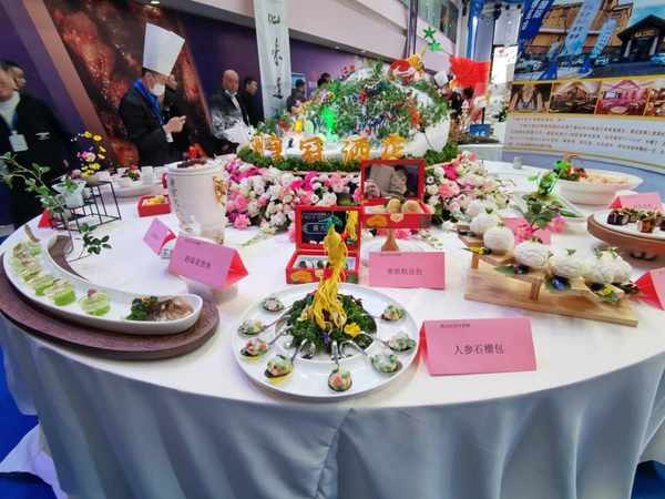 在通化廣電大廈宴會廳,上百道風味美食十裡飄香,來自通化市各區域的52傢餐飲企業摩拳擦掌,現場打擂。參賽企業紛紛拿出看傢絕活,一桌桌特色美食盡顯雕花、炒制、煎炸、擺盤等烹飪工藝。集安特色烤肉、高麗火盆、養生人參宴、滿族餃子宴、蒙古烤羊肉,養生山野菜,白肉血腸、黃金肉片、關東蒸魚……菜品一一上陣,造型美觀、制作精良,一菜多味、咸甜分明,色鮮味濃、酥爛香脆,匠心獨運、別具一格。