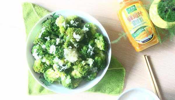 主材料:西蘭花300克、花生油10克、蒜25克、濃縮鮮雞汁8克