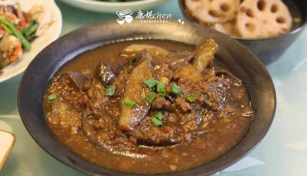 這道菜是肉末茄子,老人傢牙齒不好,肉類剁碎吃得方便,所以香煎蓮藕餅和肉末茄子煲,都是放肉碎,茄子軟軟的,老人傢很愛吃,他們說這盤是下飯菜。