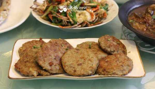 這道菜是香煎蓮藕餅,我記得以前我媽媽做過,把蓮藕剁碎和豬肉混在一起煎得香噴噴,我女兒和我媽媽都誇這道菜很好吃。