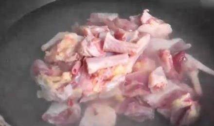 在制作美味的雞肉之前首先準備一隻處理幹凈的雞,然後把雞肉剁成肉塊,剁好之後放一邊備用。接著熱鍋往鍋中倒入大半鍋清水大火煮開,等水煮沸之後把剁好的雞肉放入鍋中進行焯水,這樣能夠有效的去除雞肉的血塊。大概將雞肉焯至5成熟時即可撈出備用。