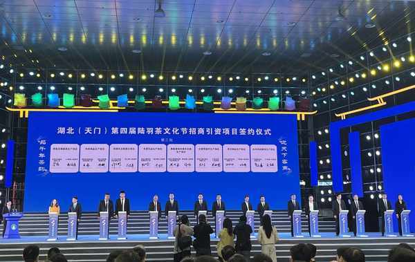 央廣網天門4月10日消息(記者朱娜 通訊員吳述明 彭丹)天門大開,茶迎天下。4月10日上午,湖北(天門)第四屆陸羽茶文化節開幕,開幕式現場,23個項目集中簽約,協議總投資110.81億元,其中億元以上產業項目15個。