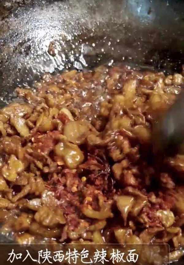 4、加入陜西特色十三香和辣椒面。