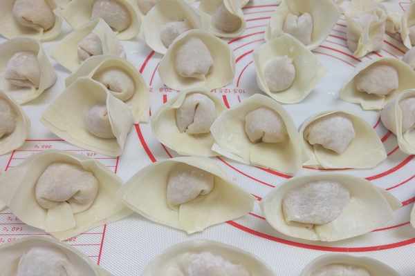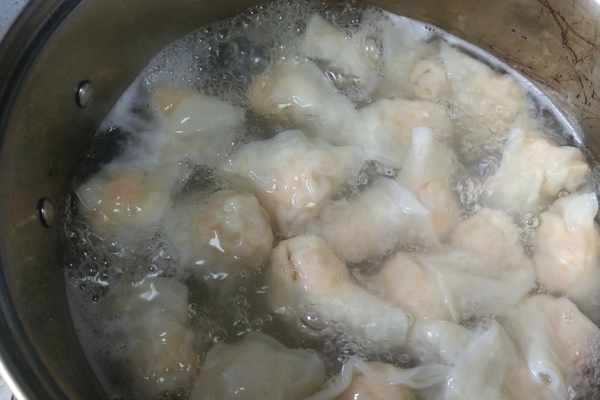 第九步:餛飩包好之後,就可以下鍋煮了,餛飩因為皮薄特別容易煮,下鍋煮到餛飩皮微微透明就可以了。
