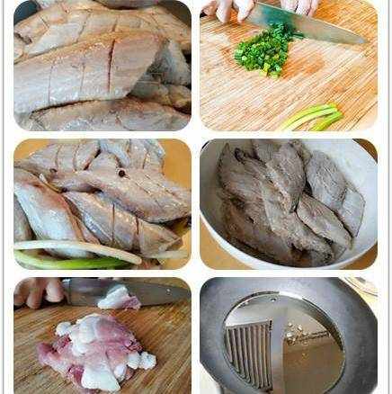 5.把豬肉去皮,切成薄片,最好是選擇五花肉。