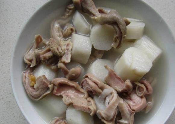 材料:山藥200克,豬肚150克,油、鹽、生薑、胡椒粉、料酒、雞精適量。