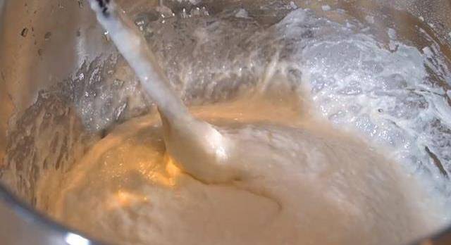 2,攪拌至沒有幹面粉顆粒之後再加入300毫升的清水不停地攪拌,直到攪拌成比較順滑的狀態即可。