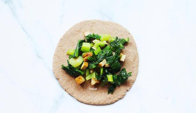 500克全麥面粉、280g溫水、12g酵母、青菜1把、豆幹4片