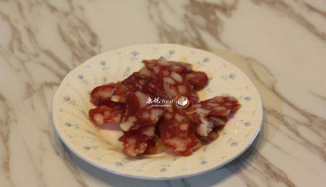 3臘腸切片,青菜洗凈