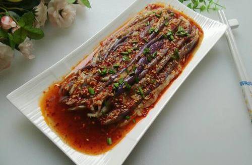 杭茄:4個、辣椒油:適量、香醋:適量、鹽:適量、花椒油:少許、香油:少許、生抽:適量、白糖:適量、薑末:少許、蒜沫:適量