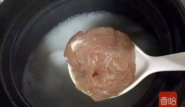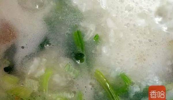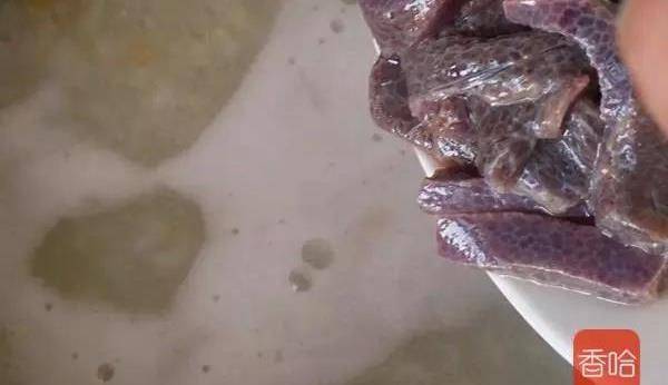 9.等大米煮大濃稠時倒入豬肝在慢煮幾分鐘