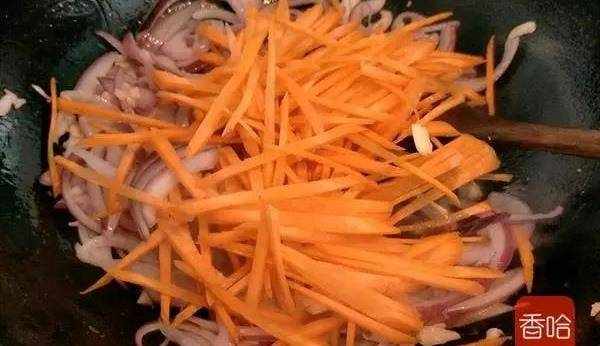 4.洋蔥炒到5成熟就加入胡蘿卜絲