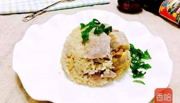 18.灑上一些蔥花,成品圖。非常鮮味。香芋粉,米飯吸收瞭雞肉和香芋的味道,非常好吃。