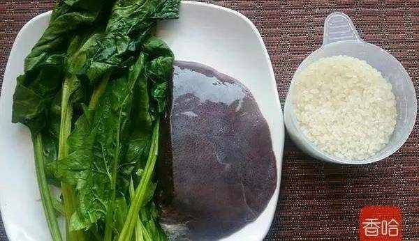 豬肝100克、大米100克、菠菜50克、鹽適量、蔥少許、薑少許、胡椒粉少許、料酒1勺、生粉1勺