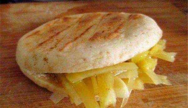 2.再次揉捏(此時面團非常粘,可以在手上加少許油揉在一起,但不要使用面粉),將其分成自己的大小,填充餡料,制作面包,然後然後關閉面朝下,壓扁,預熱電烤盤的下鍋,刷上油層,放入蛋糕,然後在表面刷另一層油,然後關閉頂蓋;