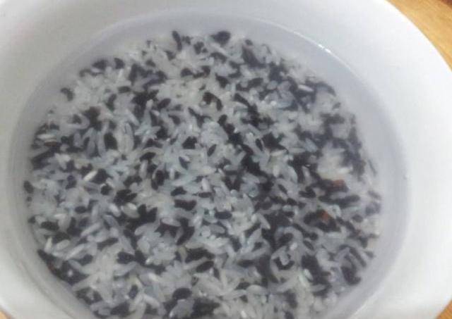 2、然後將大米、糯米和黑米在清水當中清洗兩遍之後,放在清水當中浸泡三個小時。