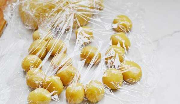 1:五仁餡料一個為55g揉成團,月餅皮一個為25g揉成團。