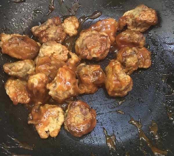 8、倒入炸好的排骨,炒勻即可出鍋。