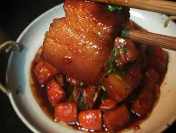 用料:五花肉500克;胡蘿卜1根;老抽適量;生抽適量;料酒適量;薑數片;香蔥適量;冰糖適量