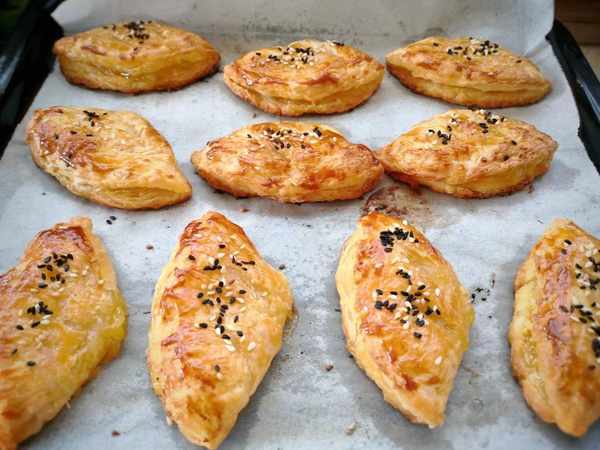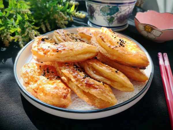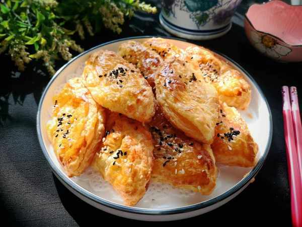 8、放入烤箱中層180度烤20分鐘,具體溫度和時間根據自傢烤箱調整,烤到表面金黃起酥就可以瞭。