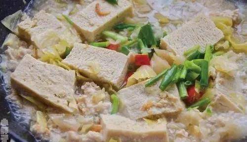 白菜燉豆腐大傢都吃過吧?在東北天冷時整個室外就是個大冰箱,豆腐凍過之後燉起來會更入味,在東北除瞭白菜人們還愛吃白菜醃制的酸菜,放點肉與凍豆腐一起燉,湯汁融進豆腐裡咬一口直冒汁。