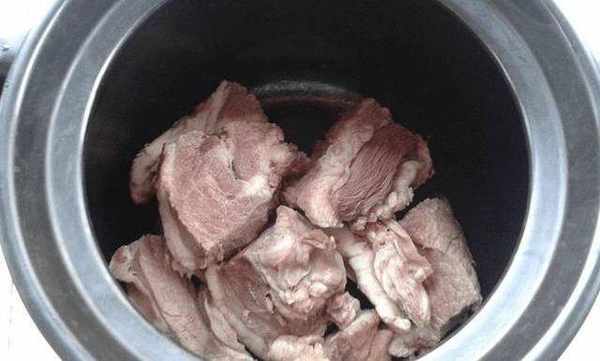 4、將處理好的牛肉放入砂鍋中。