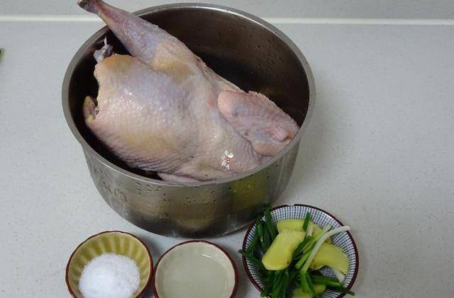 下面分享詳細做法;需要的食材;土雞1隻,白酒2湯勺、鹽2湯勺,生薑片5克、小蔥適量、黃酒2湯勺。