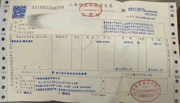 宋小姐當晚與弟弟就餐共花費17776元。圖源受訪者