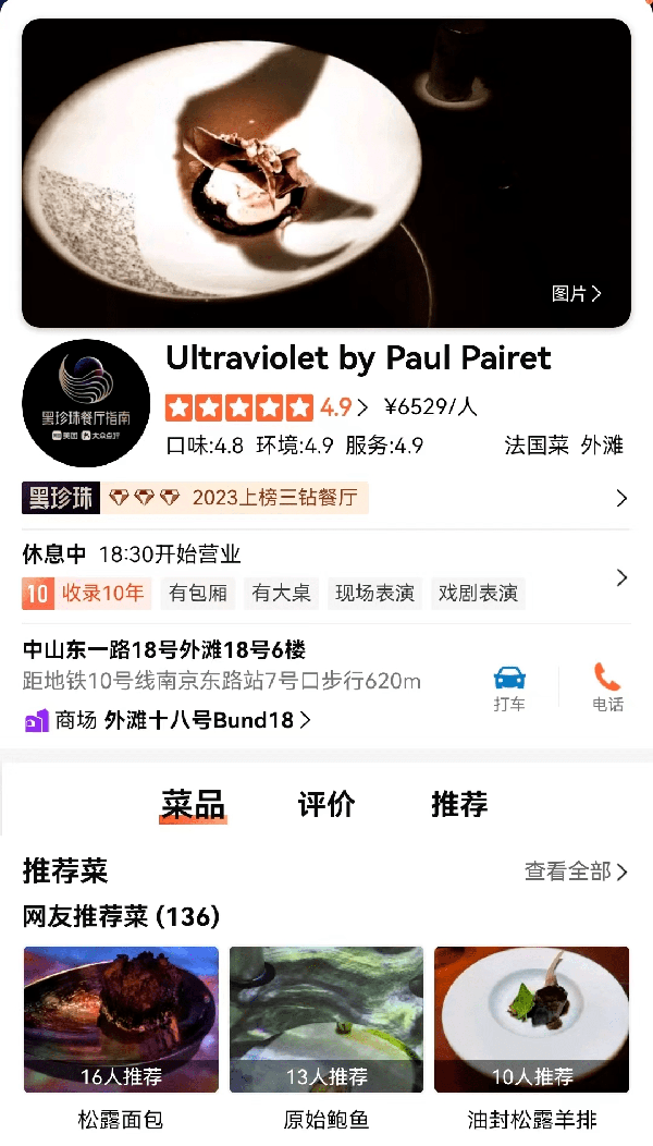 此外,根據某點評軟件的公開信息,這傢餐廳還入選瞭“中國人自己的美食榜”——黑珍珠餐廳指南的三鉆餐廳,也是最高等級的餐廳。