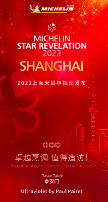 其中,米其林三星為最高等級,代表“卓越烹調,值得造訪”。“UltravioletbyPaulPairet”餐廳是唯二入選《上海米其林指南2023》的三星餐廳,同時連續3年獲得三星殊榮。