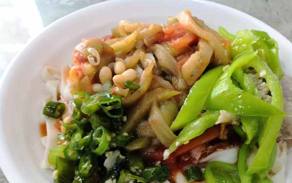 而自己在漯河許昌那邊吃到的撈面條,跟涼面條比較像,不過還是有些差距,撈面條也是先炒菜,番茄雞蛋、蒜薹肉絲等等,不過裡面是不放水的,就是炒好的一盤菜,菜準備好以後就開始煮面條,撈面條做法中煮好的面條也是不過涼水的。