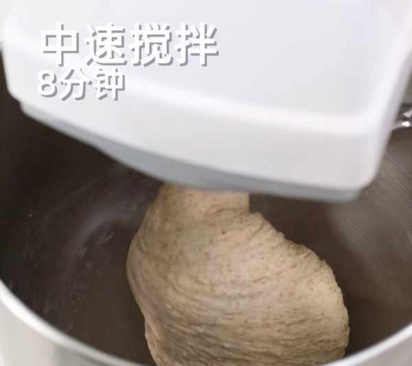 繼續中速攪拌8分鐘,至面團完全拓展。
