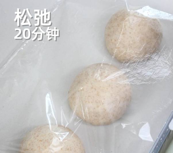 蓋保鮮膜松弛20分鐘,松弛這個步驟很重要,不要為瞭偷懶省時間,因為松弛不足的面團延展性不好,容易搟斷面筋。