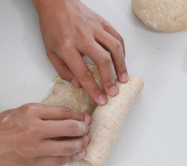 然後卷起,再次蓋保鮮膜松弛20分鐘。
