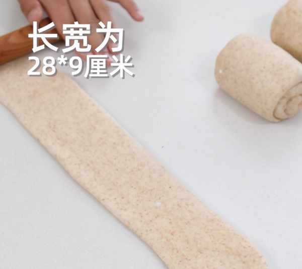 最後搟成長28厘米*寬9厘米,然後卷起。