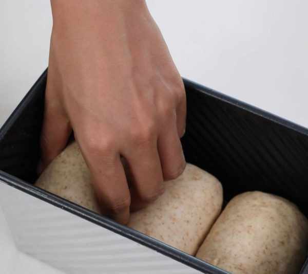 送入吐司盒蓋保鮮膜,室溫28度發酵40分鐘。