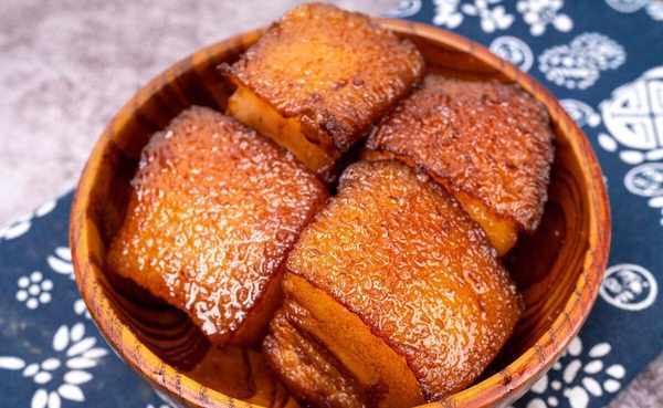 如果你想炸出漂亮的虎皮扣肉,那麼除瞭需要選擇好五花肉外,還需要註意五花肉煮熟燉入味,炸之前晾幹表面的水分,表面均勻抹上淀粉,火候要適宜,翻動均勻,火力要掌握好,最後在炸好的虎皮扣肉上稍稍晾涼,切成薄片,擺盤即可享用。