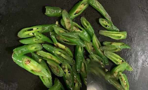 將辣椒片放入鍋中,烤得均勻後,就可以撈出鍋瞭。味道很好吃。超級好吃。老公吃瞭一大碗飯,一粒米都沒有。做法也很簡單,味道也很好。特別適合懶人。不需要準備太多的調料和配料,也不需要醃肉。把它放在鍋裡炸一下就可以瞭。