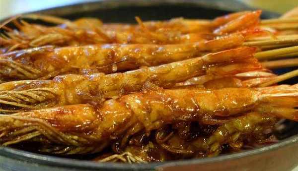 石烤蝦:這蝦必須用個頭大的蝦,用竹簽串著,吃的時候拿著也方便,蝦肉很嫩,孩子們也都很愛吃。