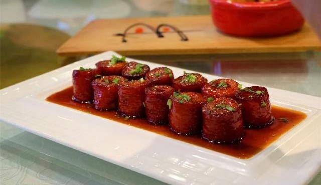 九轉大腸:被稱為魯菜經典,肥而不膩,鮮香味美,深受眾多愛吃肥腸的食客喜愛,而且這形狀多好看啊,我一個不愛吃肥腸的人都忍不住吃瞭兩塊。不過這肥腸收拾起來挺費事的。