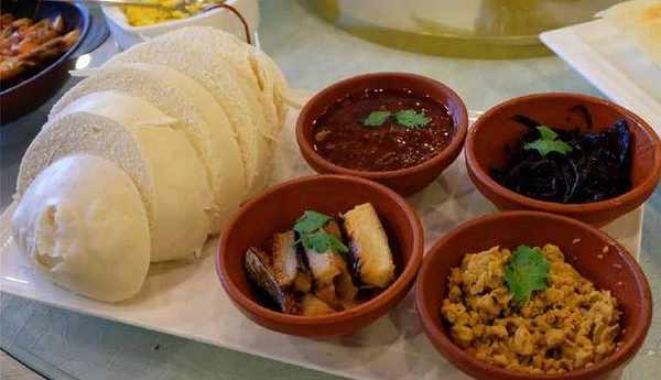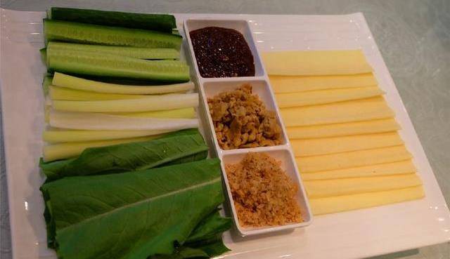 山東煎餅,本來很粗糙的山東煎餅這麼一擺還挺精致的,不過還是少瞭山東人的豪爽。我記我在山東吃煎餅那都是一張大大的煎餅,沒這麼秀氣的哦。不過如果上大煎餅的話,其它的菜也都可以不用吃瞭,一張煎餅就能吃飽瞭。